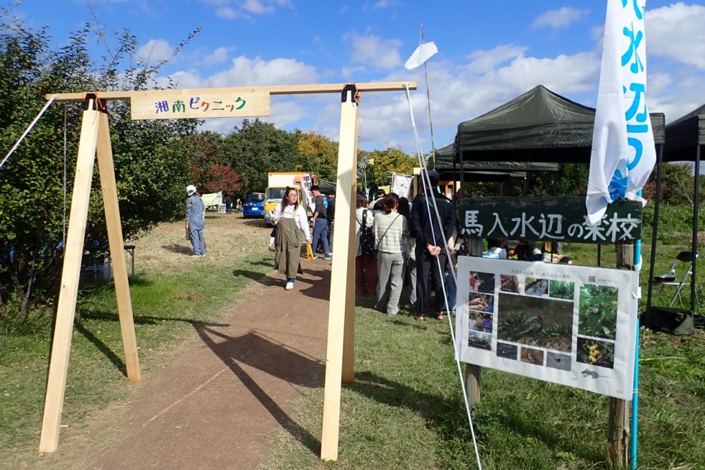 11月16日(日)、青く透き通った空の元、水辺の楽校の母なる自然がみんなを暖かく包んでくれました。野遊びの祭典「湘南ピクニック土手の下のSDGs」が開催され、500人を超える市民で賑わいました。クズのつるの輪投げやバスボムづくり、木の恐竜づくり、トルコランプづくりなど、楽しい催しがてんこ盛りで、ちびっ子たちの歓声が溢れました。ミニ自然ガイドツアーには多数のファミリーが参加し、生き物たちとの触れ合いを楽しみました。活動に対する問い合わせも多く、手応えありの催しとなりました。