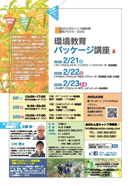 「環境教育パッケージ講座」は、自然体験活動に携わる方、これから携わりたい方はもちろん、