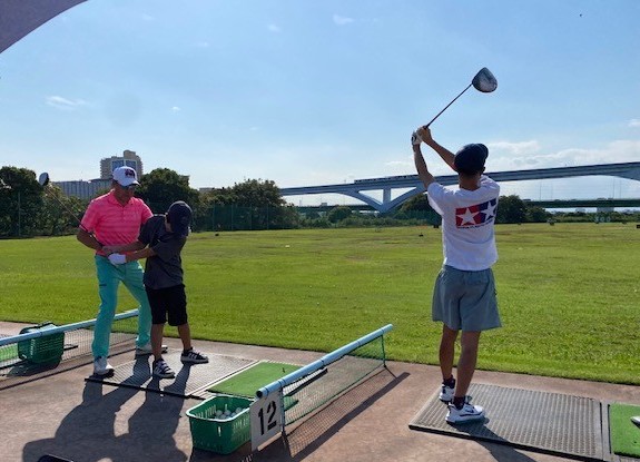 新東京都民ゴルフ場をお借りして、打席レッスンの成果を発揮する場となり、のびのびとラウンドする姿が印象的でした。